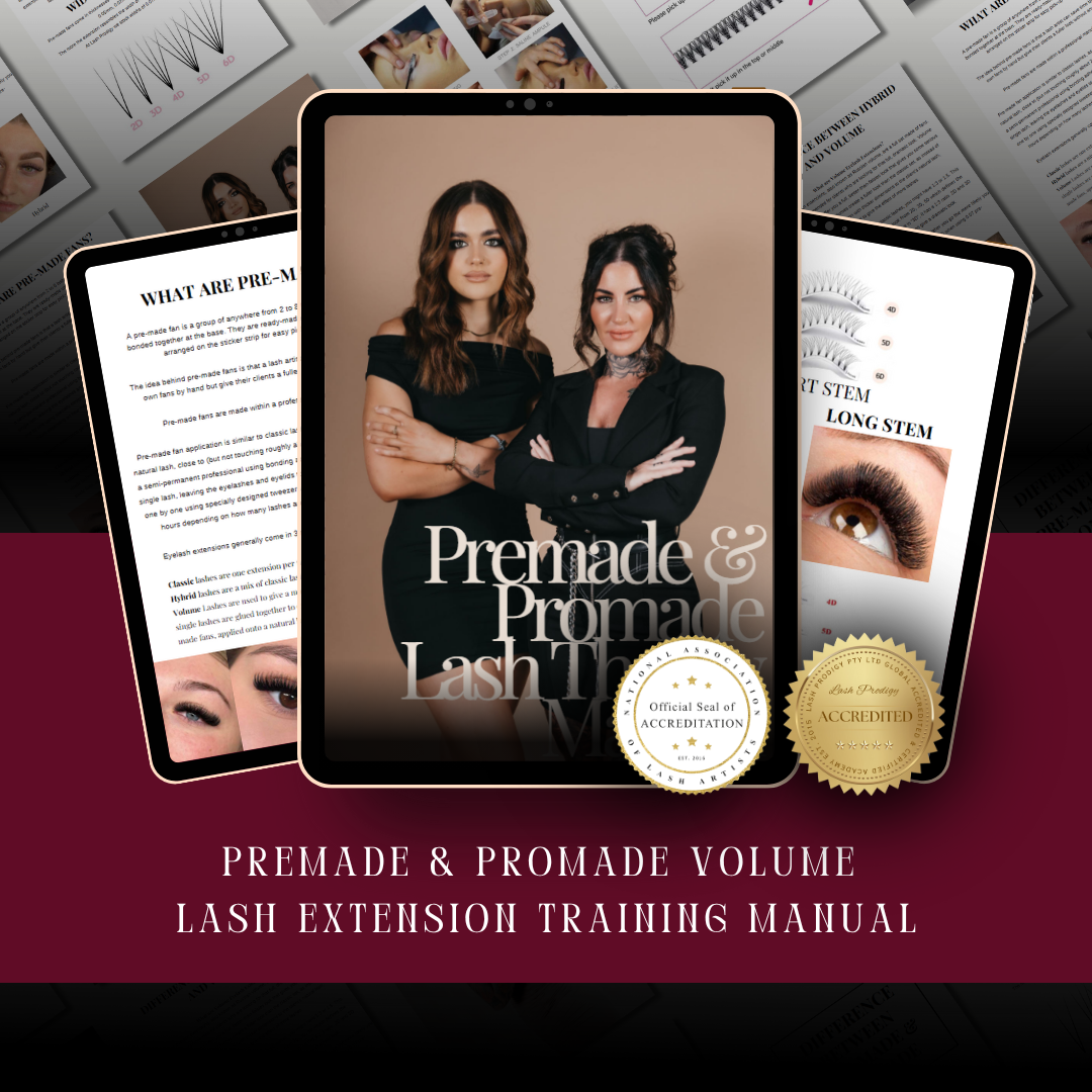 The Premade Volume Lash Manual is a complete training resource designed to teach the correct application, styling and retention methods for premade and promade fan eyelash extensions. This manual provides the essential theory, technique breakdowns and application standards needed to achieve safe, clean and long-lasting premade volume sets.