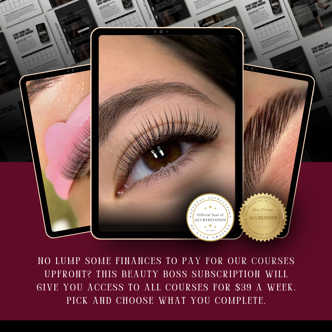 No lump some finances to pay for our courses upfront? This beauty boss subscription will give you access to all courses for $39 a week. Pick and choose what you complete.