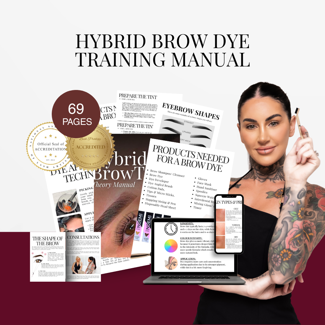 Our Hybrid Dye Theory Manual is designed to give you a strong, confident understanding of hybrid dye brows — without overwhelm, fluff, or outdated theory. Whether you’re a beginner or refining your brow skills, this manual breaks everything down in a clear, practical way so you can deliver beautiful, long-lasting results for your clients.